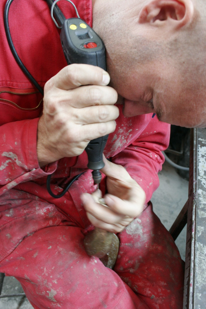 Nach dem Brand hinterlässt dieses Material eine feine Oberfläche. Ebenso werden Modelle für Plastiken die 75 m lang werden sollen skaliert in 1:20 aus Messing, Blech und andere Materialien, die Ähnlichkeit aufweisen mit den Modellen von Jean Tinguely.