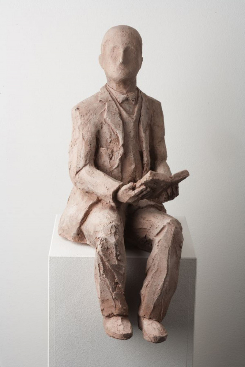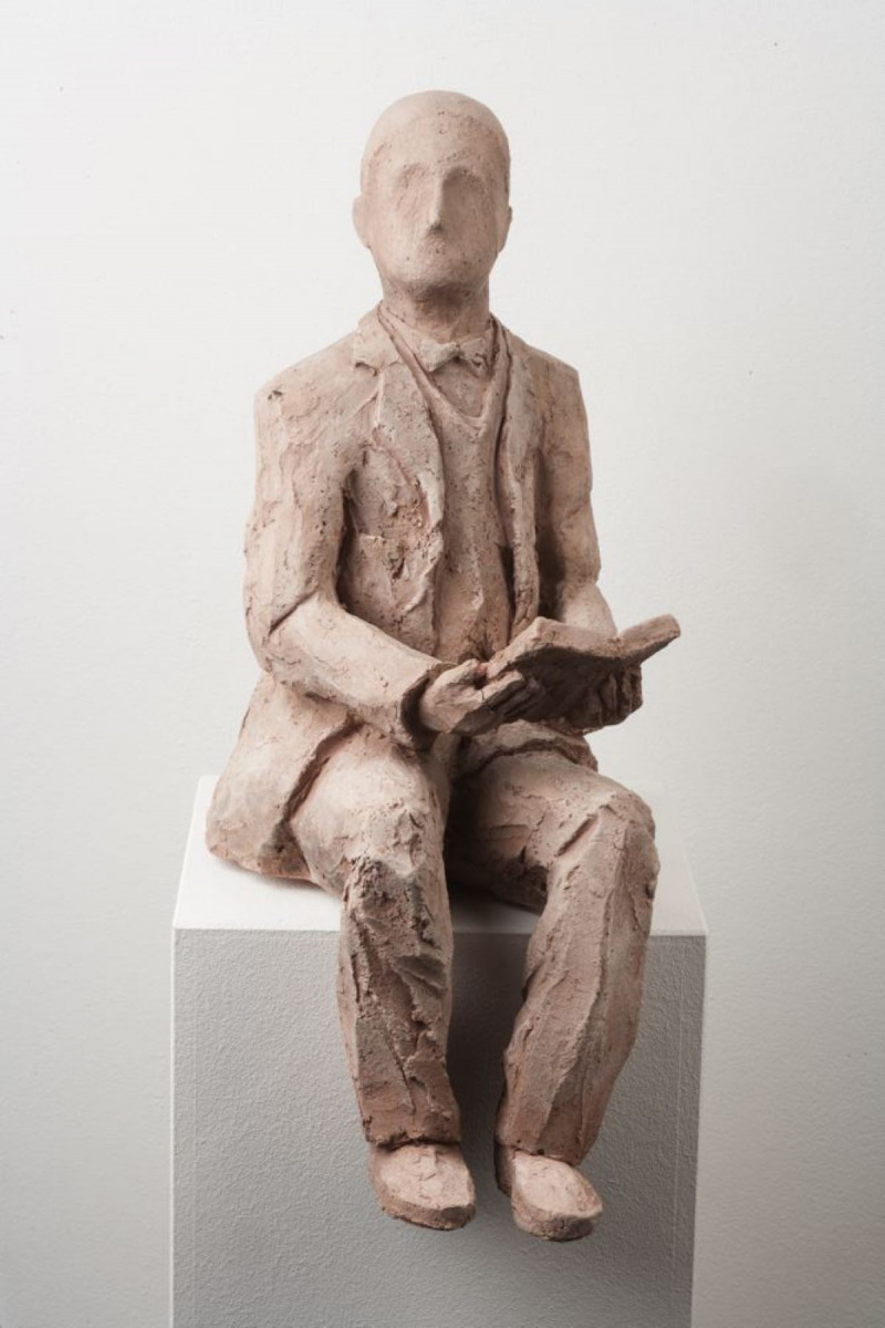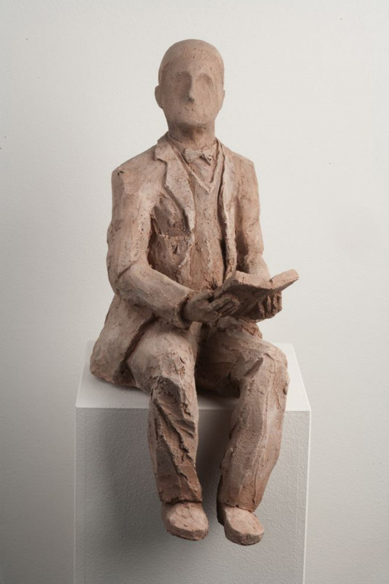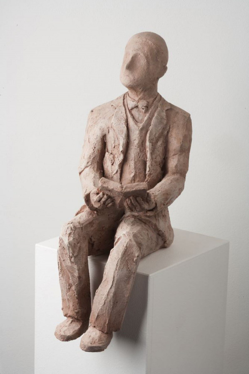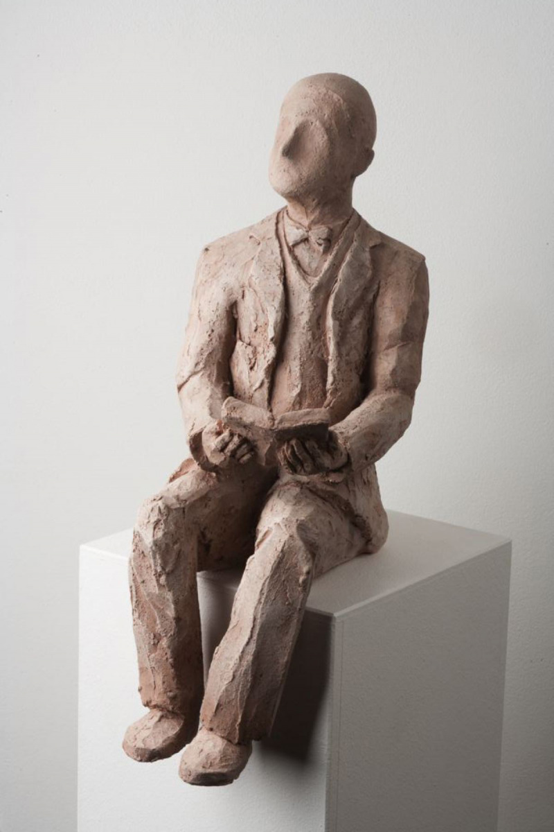 Die Skulptur widersteht jedem Sturm. Die Holzbank auf der er sitzt wird immer wieder renoviert, aber Carl Faust lächelt, egal was kommt.