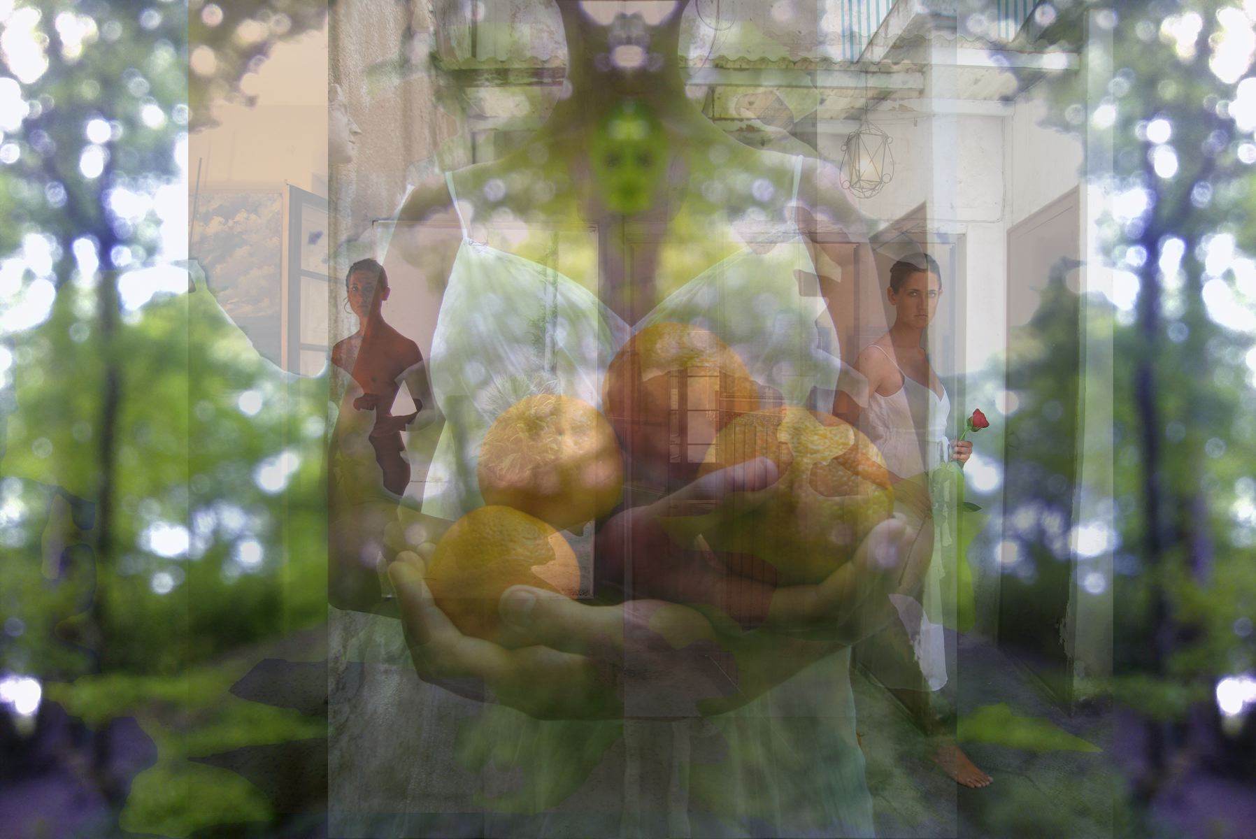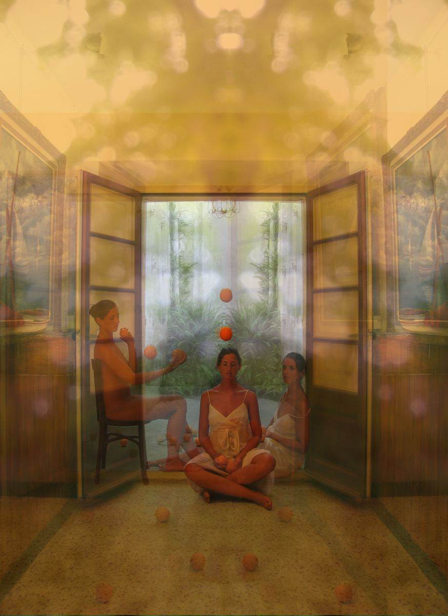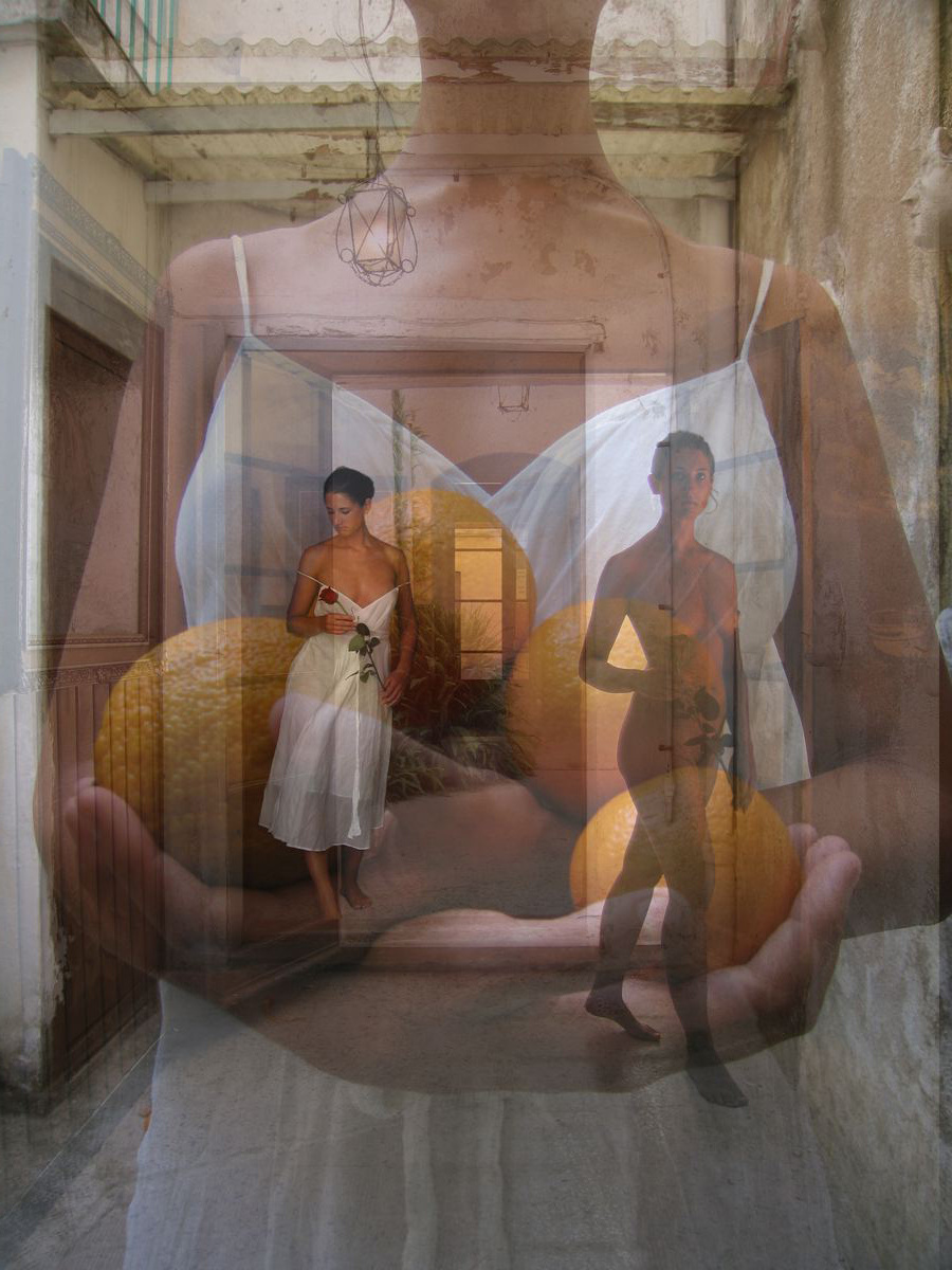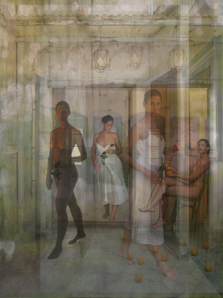 Die Bilder entstehen in einem Setting dass mein Atelier mit einem paradiesischen Garten, einem Ort in der Natur oder einem sakralen Ort verbindet. Jeder gewählte Ort hat eine Bedeutung im Gesamtwerk