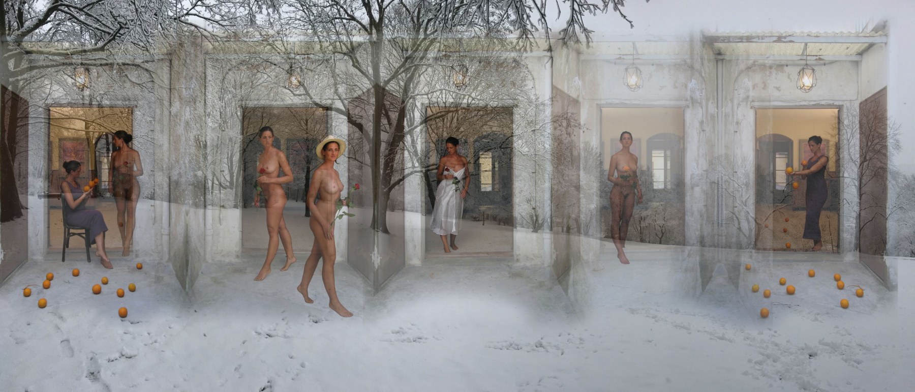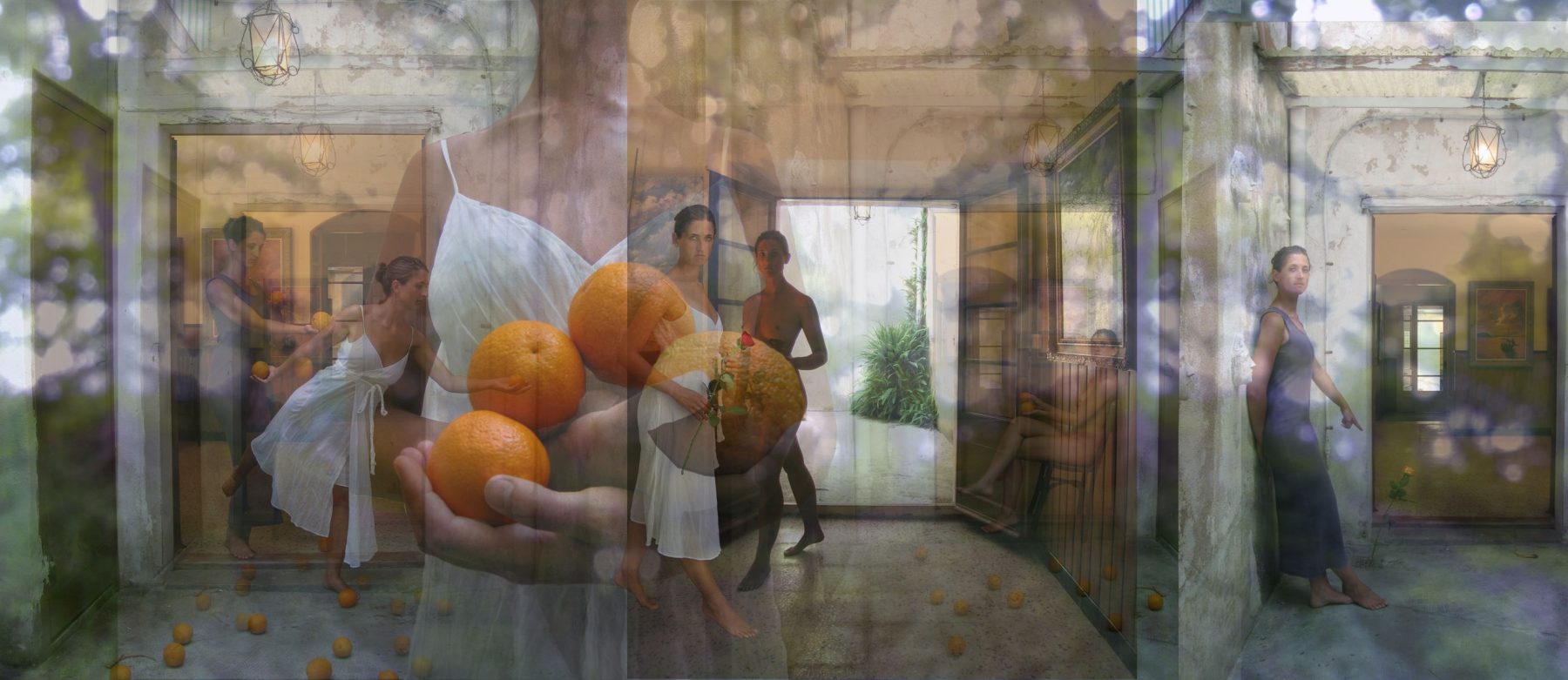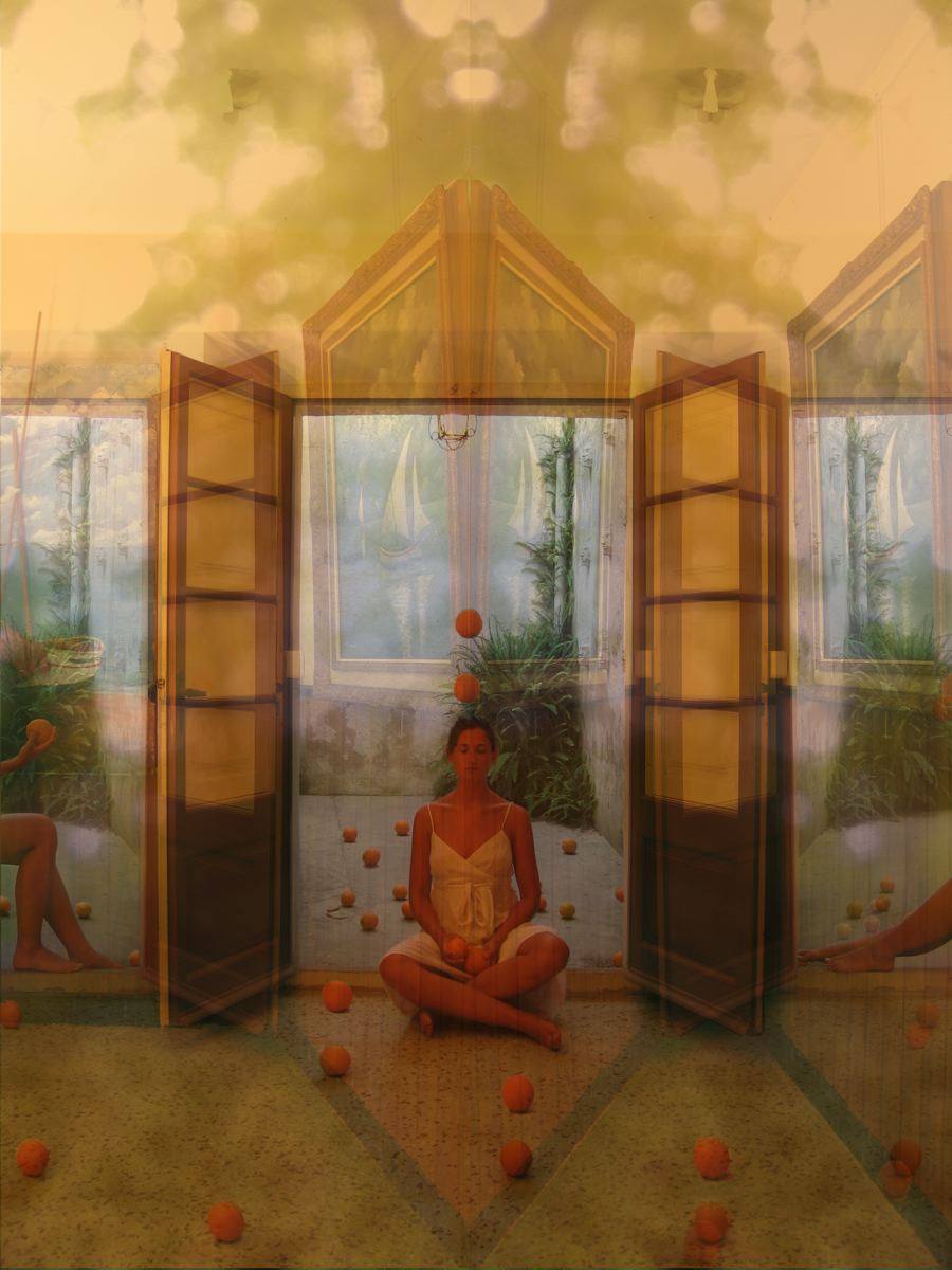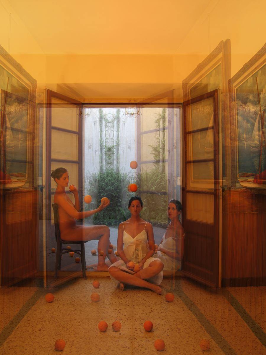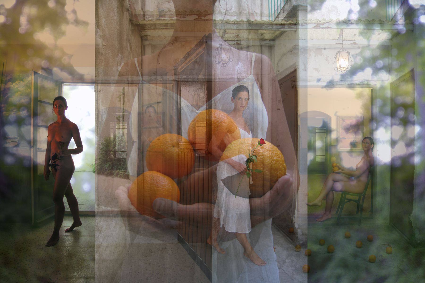 Die Bilder entstehen in einem Setting dass mein Atelier mit einem paradiesischen Garten, einem Ort in der Natur oder einem sakralen Ort verbindet. Jeder gewählte Ort hat eine Bedeutung im Gesamtwerk